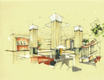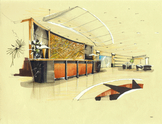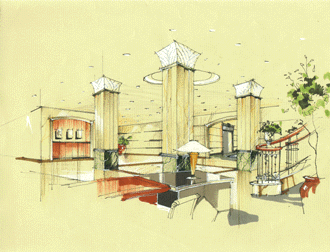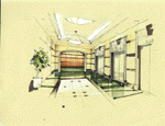 HOTEL INTERIOR DESIGN DESIGN COMPETITION 1997 In Shanghai, nearly all the projects need competition to select the best solution for the proposed investments. Being a designer as well as an illustrator, I have a good opportunity to demonstrate my ability in design, and present my design in my way. This hotel design finished in Dec. 1997. Clients preferred using Shanghai's historic characters as key elements. I try to create a simplified classical image. Traditional granite enhances the lobby's elegance. But some materials are not traditional. For example, the hanging panel above the reception is made of complex alucbond. |